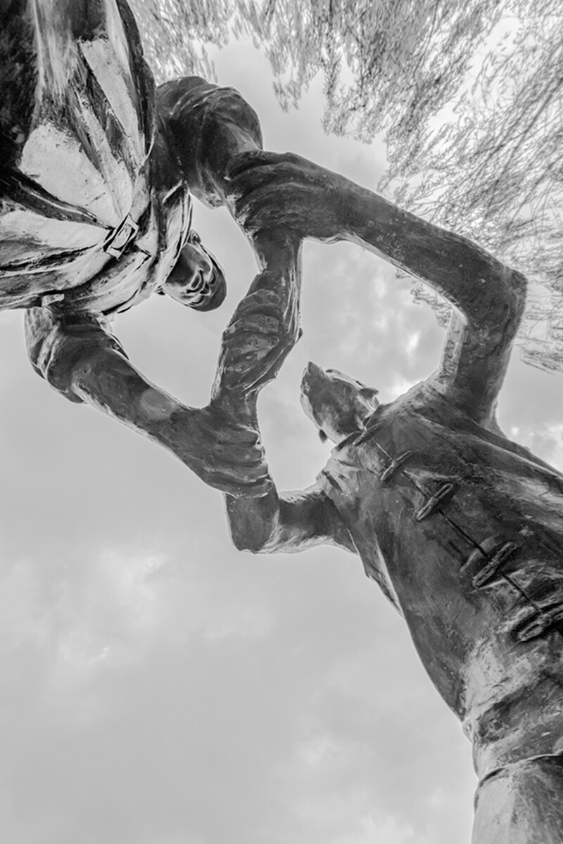 2025年8月16日,德州市岔河景区,拥军爱民的主题雕塑。