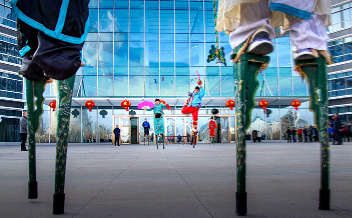 2025年2月12日,德城区运河街道闫庄高跷队来到华鲁恒升研发园北广场,为职工带来了精彩的高跷表演。