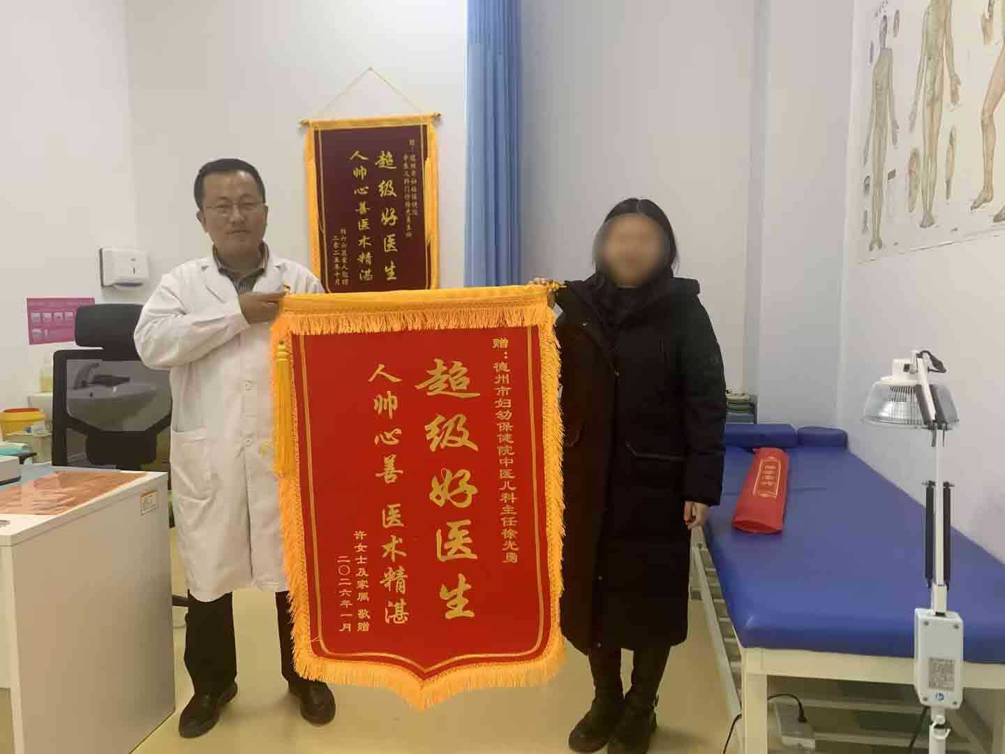 “徐主任,太感谢您了!不仅把孩子的反复咳嗽调理好了,连我缠了一个多月的顽咳也治好了!”近日,市民李女士(化名)将一面鲜艳的锦旗送到德州市妇幼保健院中医儿科专家门诊,一个劲儿地向副主任医师徐光勇表达感谢之情。