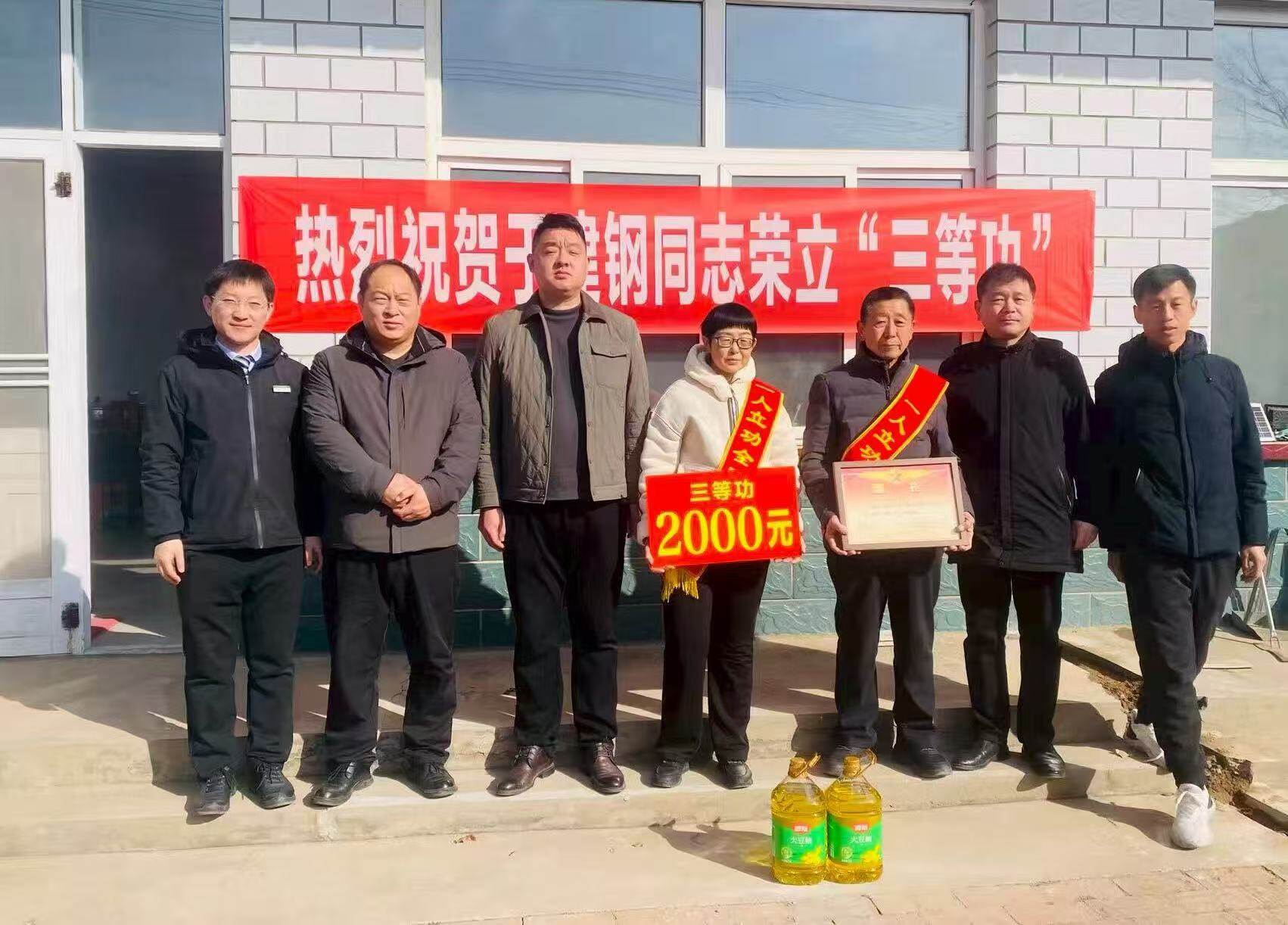 为进一步弘扬拥军优属光荣传统,在全社会营造尊崇军人、关爱军属的浓厚氛围,2月9日,庆云县退役军人事务局、邮政集团庆云分公司、东辛店镇退役军人服务站及小菅村村两委,共同组成送喜报队伍,专程前往小菅村,为在部队荣立三等功的现役军人于建钢家庭送上立功喜报与热烈祝贺。