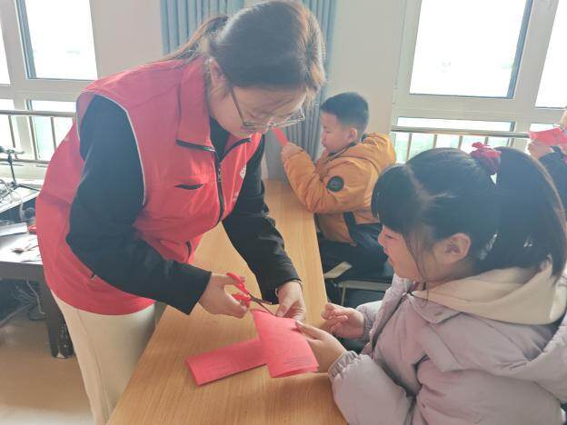 活动中,青鸟学子王泽越用通俗易懂的语言讲解剪纸的起源、技法和吉祥图案寓意,手把手指导孩子们使用剪刀、折剪纹样,从简单的福字到趣味的窗花,孩子们认真创作、大胆尝试,一张张红纸在指尖变成灵动的剪纸作品,在体验中收获满满成就感。