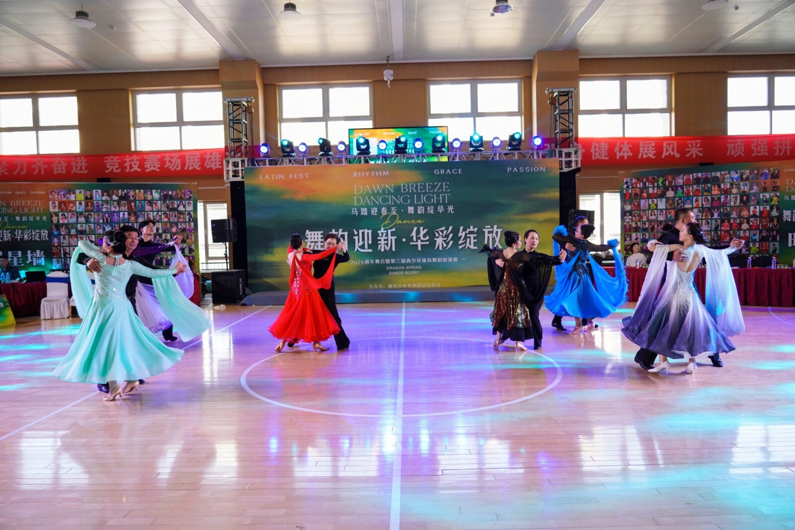 日前,2026新年舞会暨德州市第三届青少年体育舞蹈展演赛在德州市养老示范园篮球馆成功举办。本次赛事由德州市体育舞蹈运动协会主办,全市各舞蹈机构联合协办,吸引500余名体育舞蹈爱好者同台竞技、共展风采,圆满完成各项赛程,顺利落下帷幕。