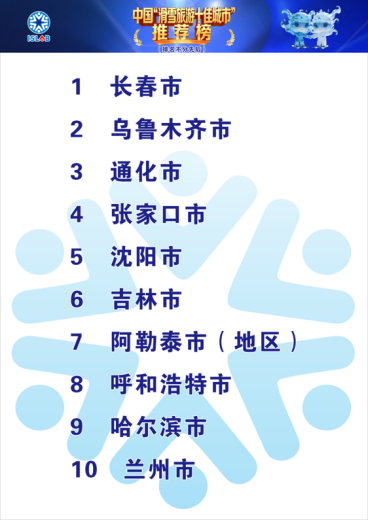 2月7日,“冰雪旅游场地装备与智能服务技术”文化和旅游部重点实验室发布“2026中国滑雪度假区竞争力推荐榜暨滑雪旅游十佳城市推荐榜”。长春、乌鲁木齐、通化、张家口、沈阳、吉林、阿勒泰(地区)、呼和浩特、兰州等十个城市入选中国“滑雪旅游十佳城市推荐榜”。