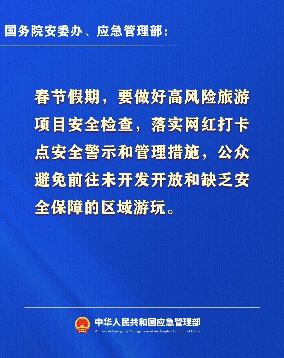据应急管理部公众号消息,今日(2月13日)国务院安委办、应急管理部发布2026年春节假期安全提示。
