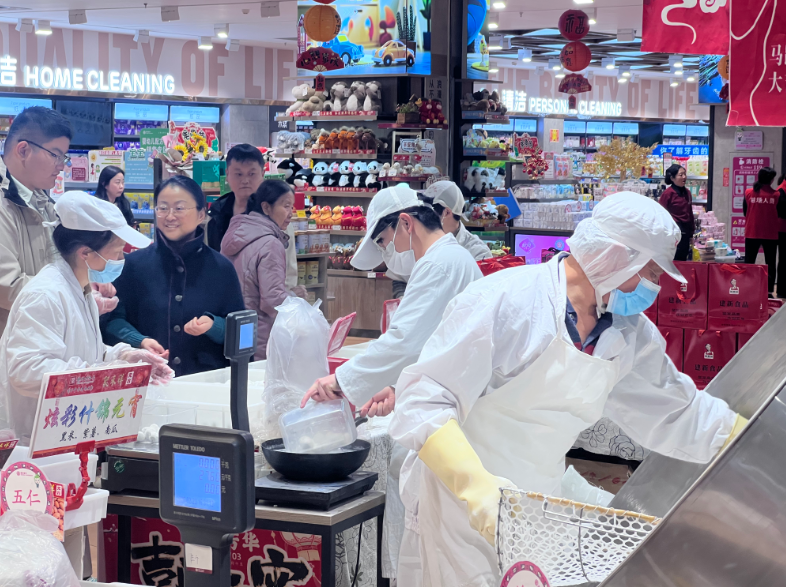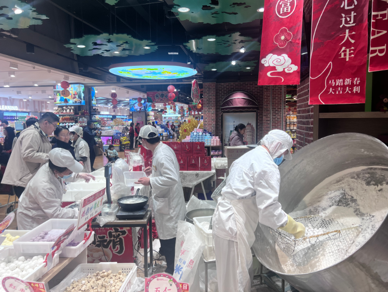当天,在澳德乐负一超市,元宵销售区人头攒动,工作人员现场制作元宵,市民按需选购,元宵零售价为27.6元/公斤。据超市工作人员高女士介绍,今年大年初二,元宵展位就已摆放。今年元宵价格变化不大,新增了芒果、山楂、香甜红枣、红糖枸杞、红糖玫瑰等口味的元宵。