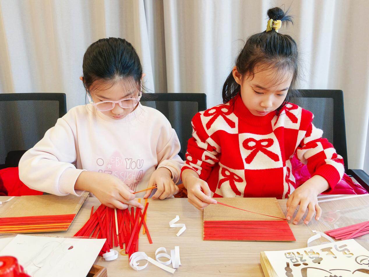 2月11日下午,研学营开展“锦铃纳福·风铃声声迎新年”民俗手作体验活动。工作人员从新春挂铃纳福的吉祥寓意切入,详解宋锦制作工艺的精妙之处,带领孩子们感受传统技艺的深厚底蕴。手工创作中,小读者们专注制作福马风铃,巧用福字、祥云等吉祥元素点缀装饰,分享心得。一只只满载心意的风铃,既承载着孩子们的新春祈愿,也让他们在实践中领略了传统工艺之美。