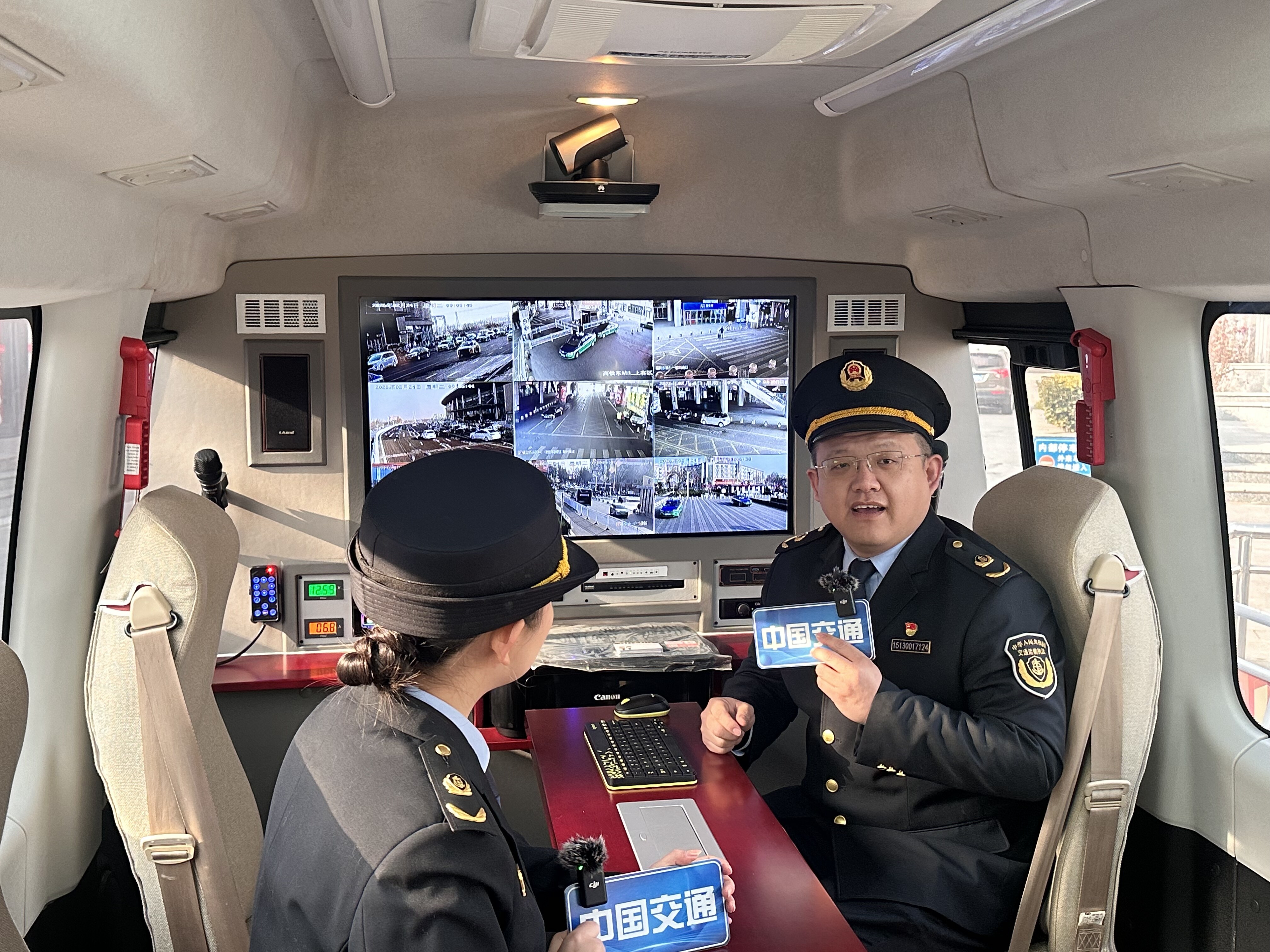 镜头聚焦应急指挥车时,市交通运输综合执法支队副支队长孙涛介绍:“这辆应急指挥车,是我们今天的‘硬核担当’。”该车集监管、调度、会商功能于一体,依托智能设备可实现一线人员精准调度、快速响应。直播还展示了春运暖心驿站,为过往旅客提供热水、充电、药品等便民服务。