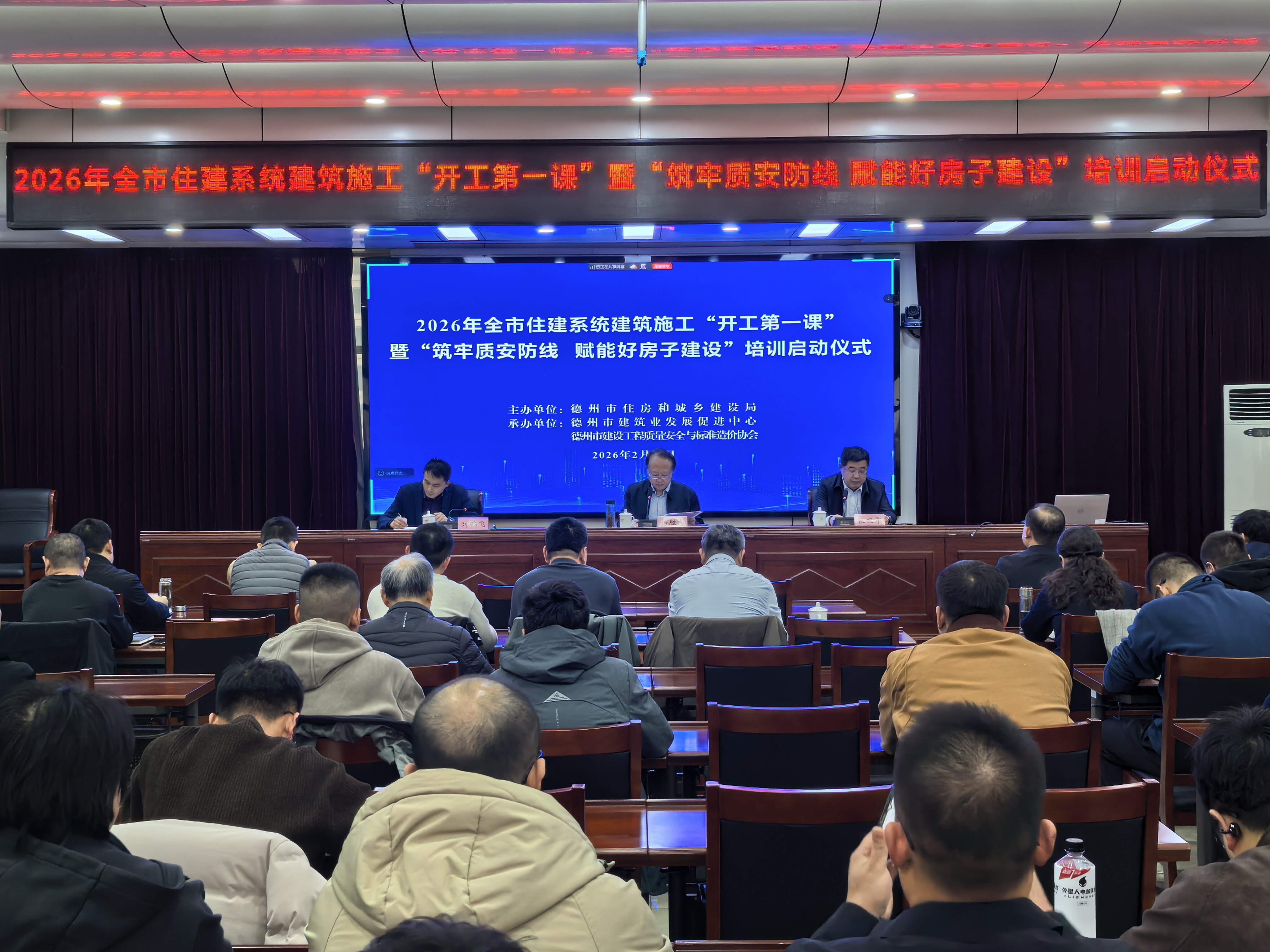 德州晚报全媒体讯 为扎实推进安全生产治本攻坚三年行动,确保住建系统安全生产工作“开门稳”“开门安”,2月25日,市住房城乡建设局启动2026年全市住建系统建筑施工“开工第一课”暨“筑牢质安防线、赋能好房子建设”培训活动。