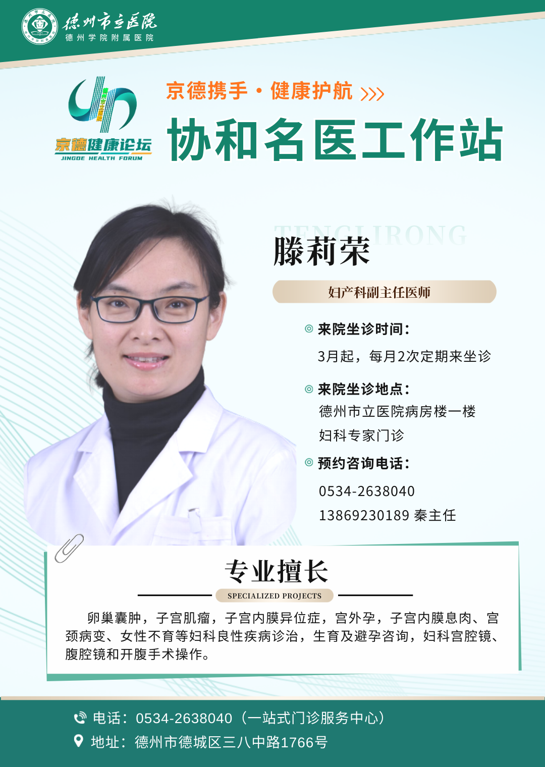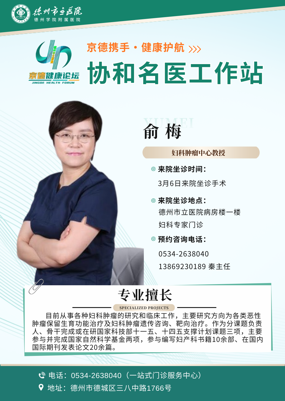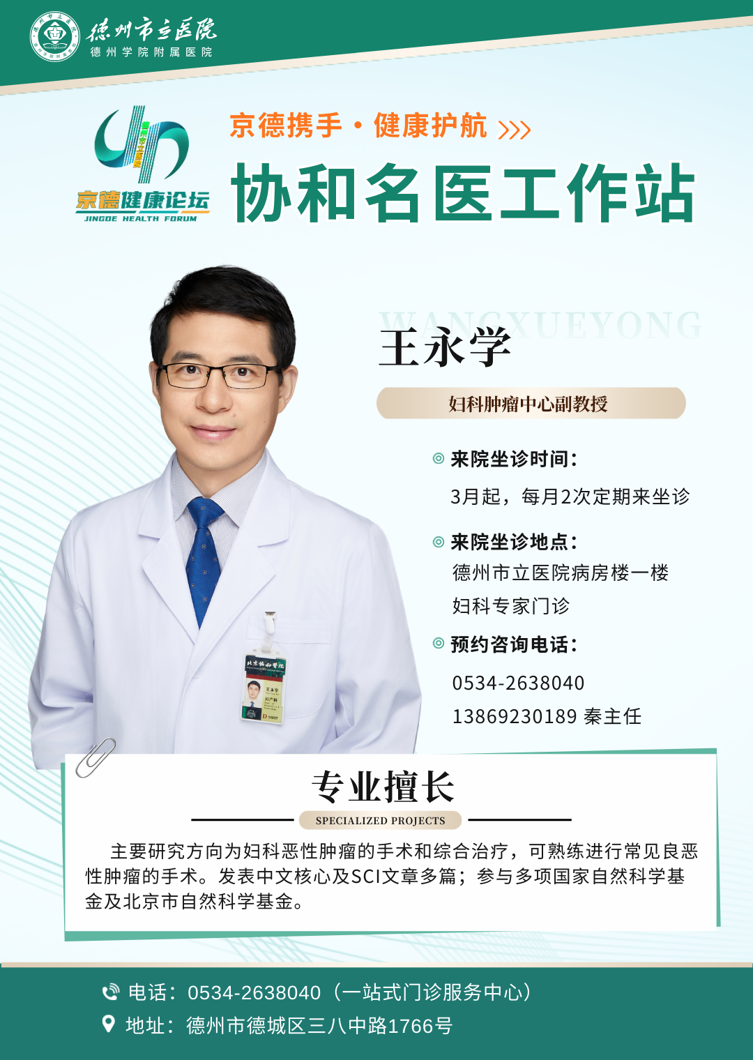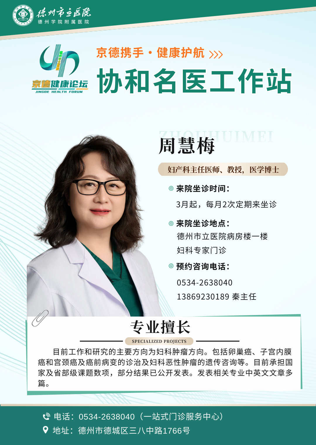 北京协和医院妇科肿瘤团队三月起定期在德州市立医院坐诊!