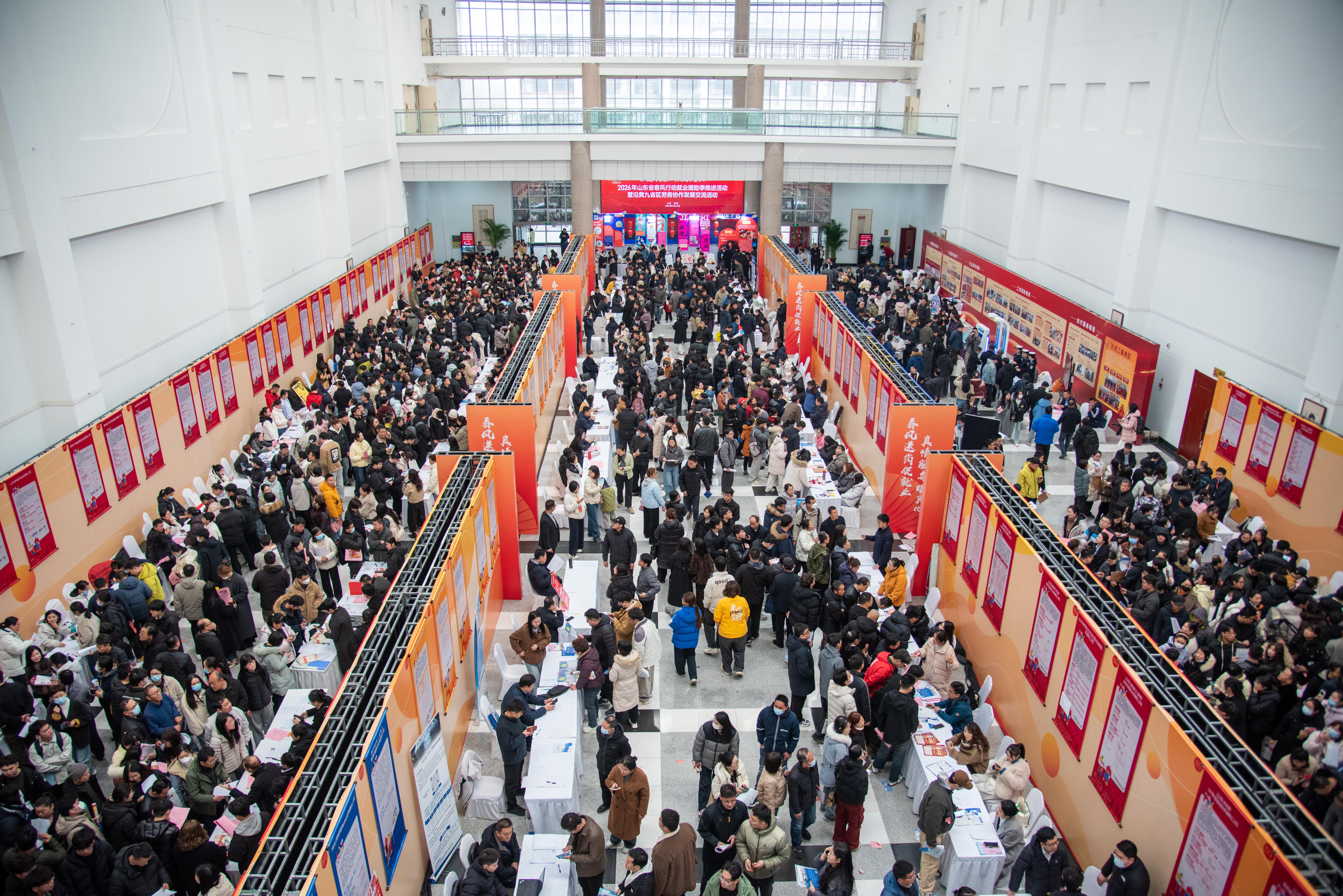 德州晚报全媒体讯 2月27日,农历正月十一,年味儿还未散去,德州会展中心已是一片热火朝天的景象,山东省春风行动就业援助季推进活动暨沿黄九省区劳务协作发展交流活动在此举行。这是德州市新春首场线下招聘会,共有253家优质企业参会,提供就业岗位9100余个,涵盖制造、新能源、教育、零售等多个行业,入场求职者近万人。