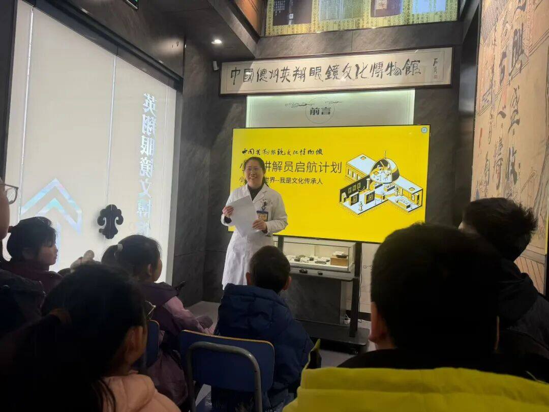 作为山东省首家眼镜文化博物馆,英翔眼镜文化博物馆收藏千余件中外眼镜老物件,全景呈现眼镜历史变迁、光学探索与匠心技艺,是看得见、摸得着的“活态文化课堂”。本次启航仪式,为孩子们搭建起走近非遗、讲述文化、服务公众的公益平台,让少年之声成为文化传承的鲜活力量。