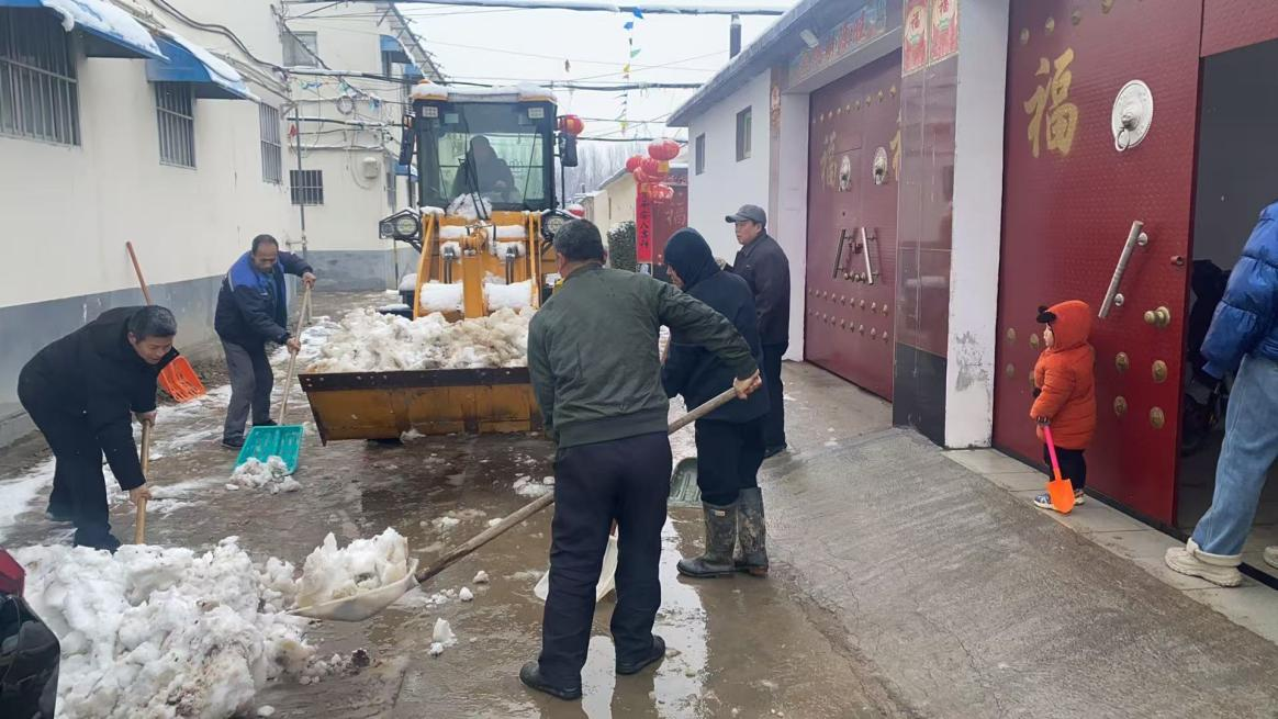 与此同时,各村积极响应,组织党员干部、志愿者及热心群众等800余人,出动中小型铲车110余辆,聚焦村内主要街巷、进村道路、文化广场、党群服务中心等重点区域进行了精细化清扫,铲雪车负责铲除路面积雪和转运冰雪,干部群众则手持铁锨、扫帚清理路面剩余冰雪,部分热心群众使用三轮车等农用车辆转运街巷内的冰雪,通过大家共同努力,辖区各村主要通行道路积雪得到有效清除,极大方便了群众雪后出行。