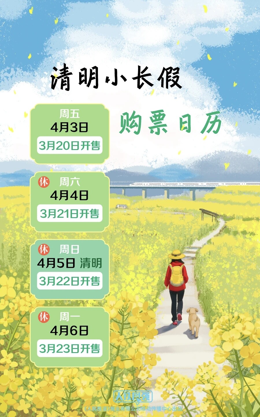 德州晚报全媒体讯 记者从铁路部门获悉,清明假期首日(4月4日)火车票将于3月21日开售,铁路部门提醒有出行计划的旅客提前做好准备,合理安排购票时间,确保顺利出行。