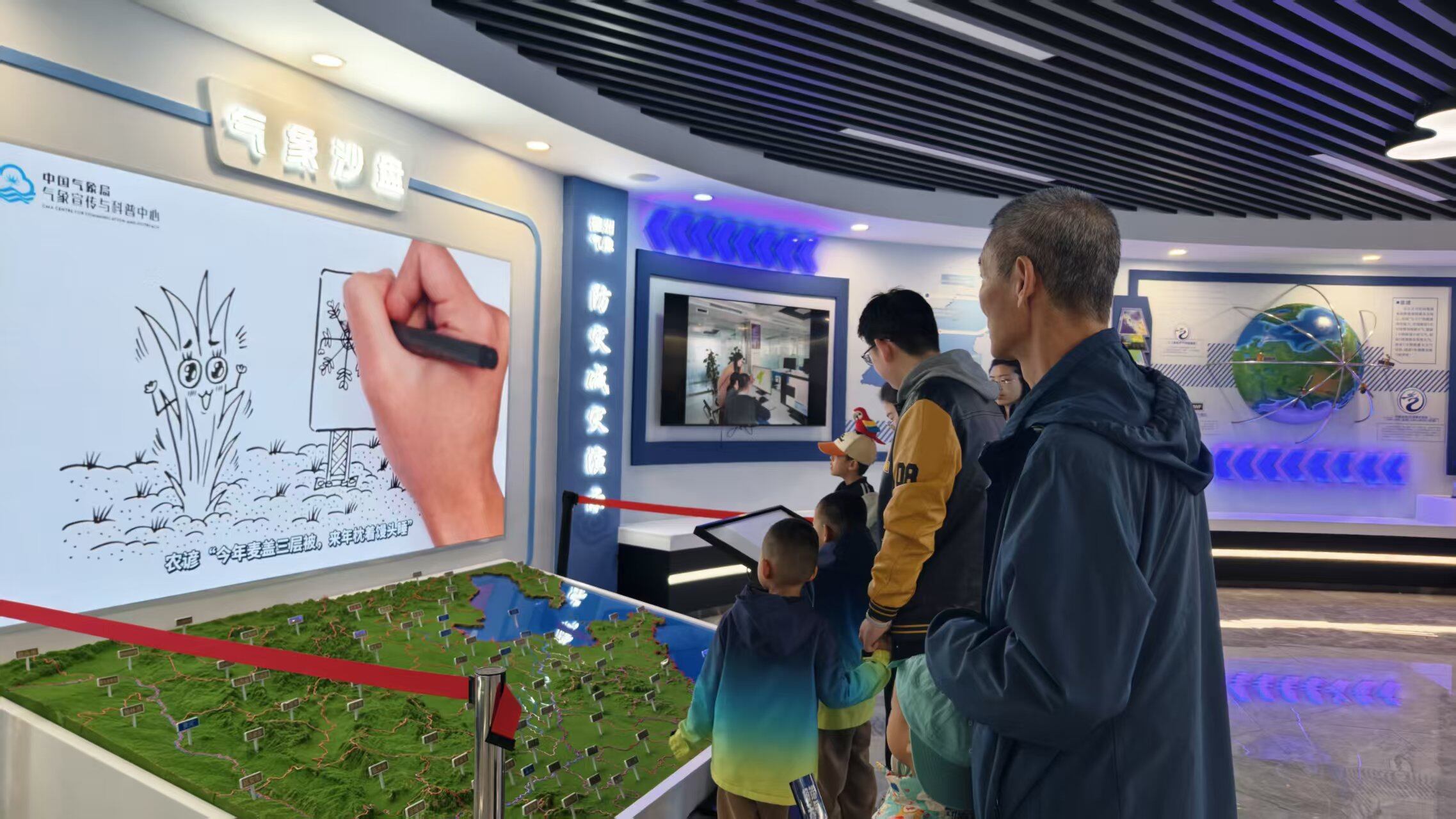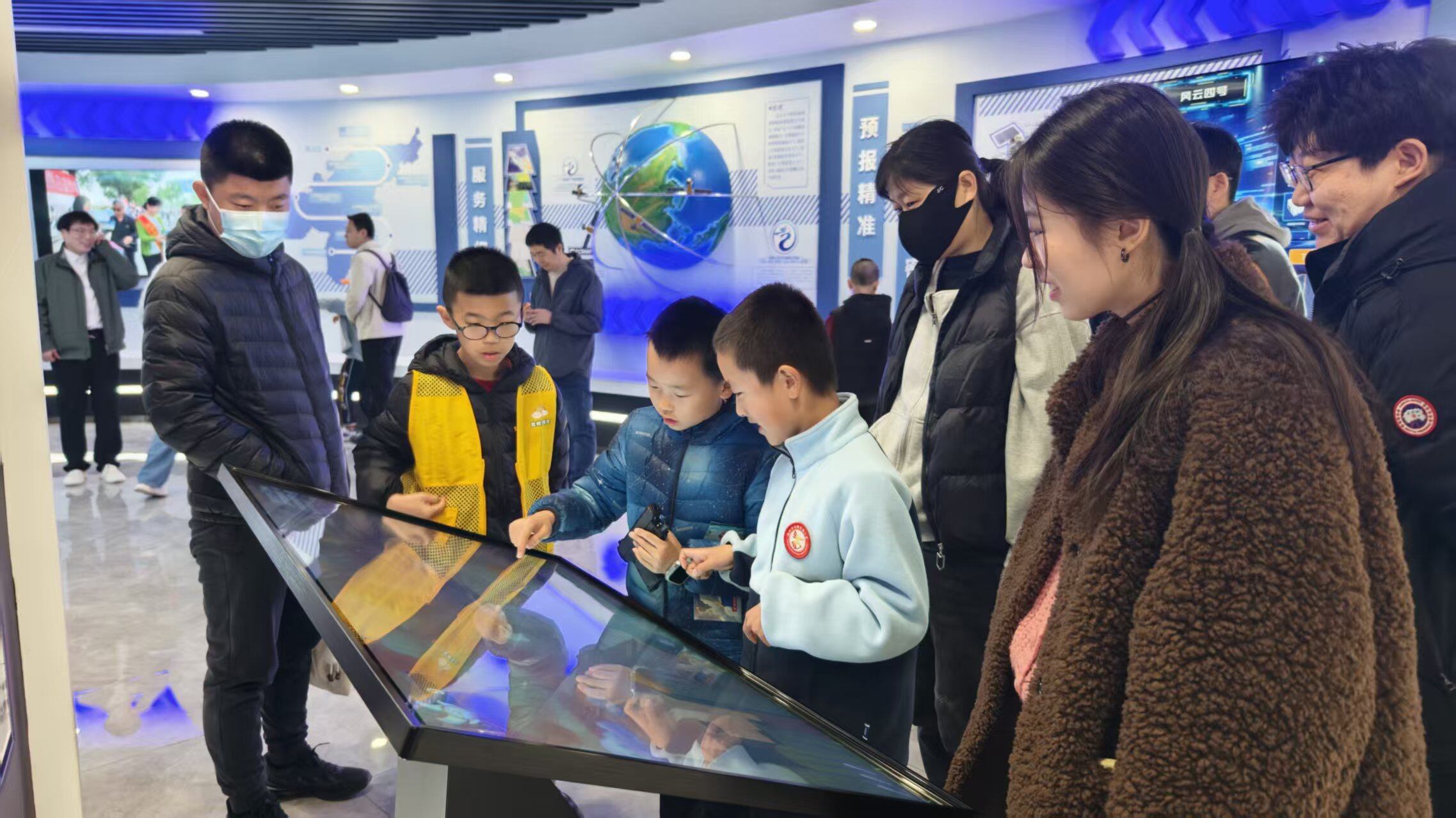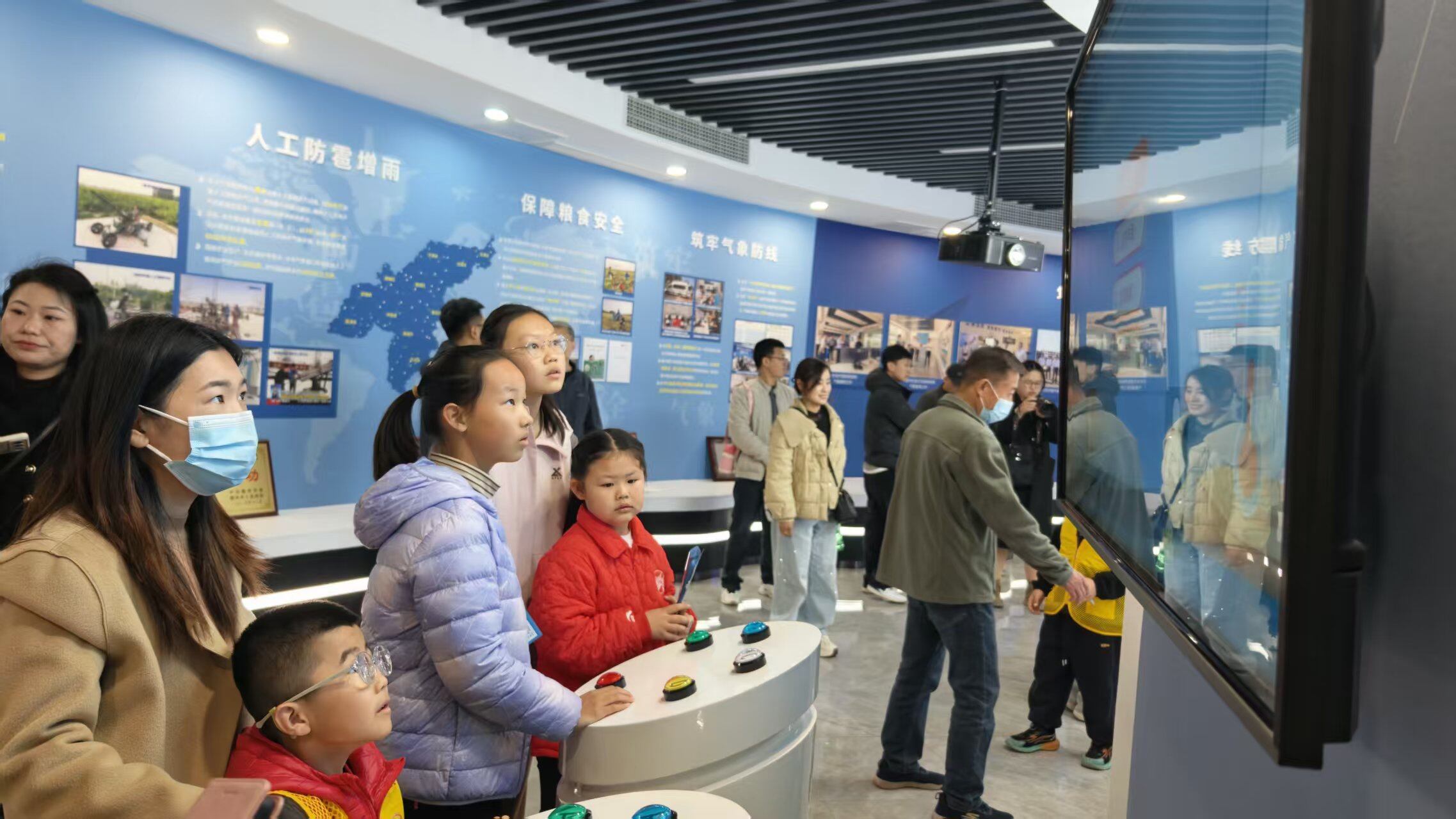 活动现场,全息投影、天气预报模拟、模拟地球等沉浸式体验环节精彩纷呈,引得孩子们驻足学习、踊跃交流,在互动中切身感受气象科技的神奇魅力。在观测场区域,孩子们近距离接触百叶箱、风向风速仪、雨量筒等地面气象观测仪器,认真聆听讲解,了解气象数据如何“上天入地”。人工影响天气专用作业装备也亮相现场,气象工作者结合设备详细讲解人工增雨、防雹的科学原理,为孩子们揭开“呼风唤雨”背后的神秘面纱。在预报员的电脑前,孩子们观看实时动态的卫星云图和雷达图,详细了解天气预报的制作全流程,对气象预测的科技魅力赞叹不已。
