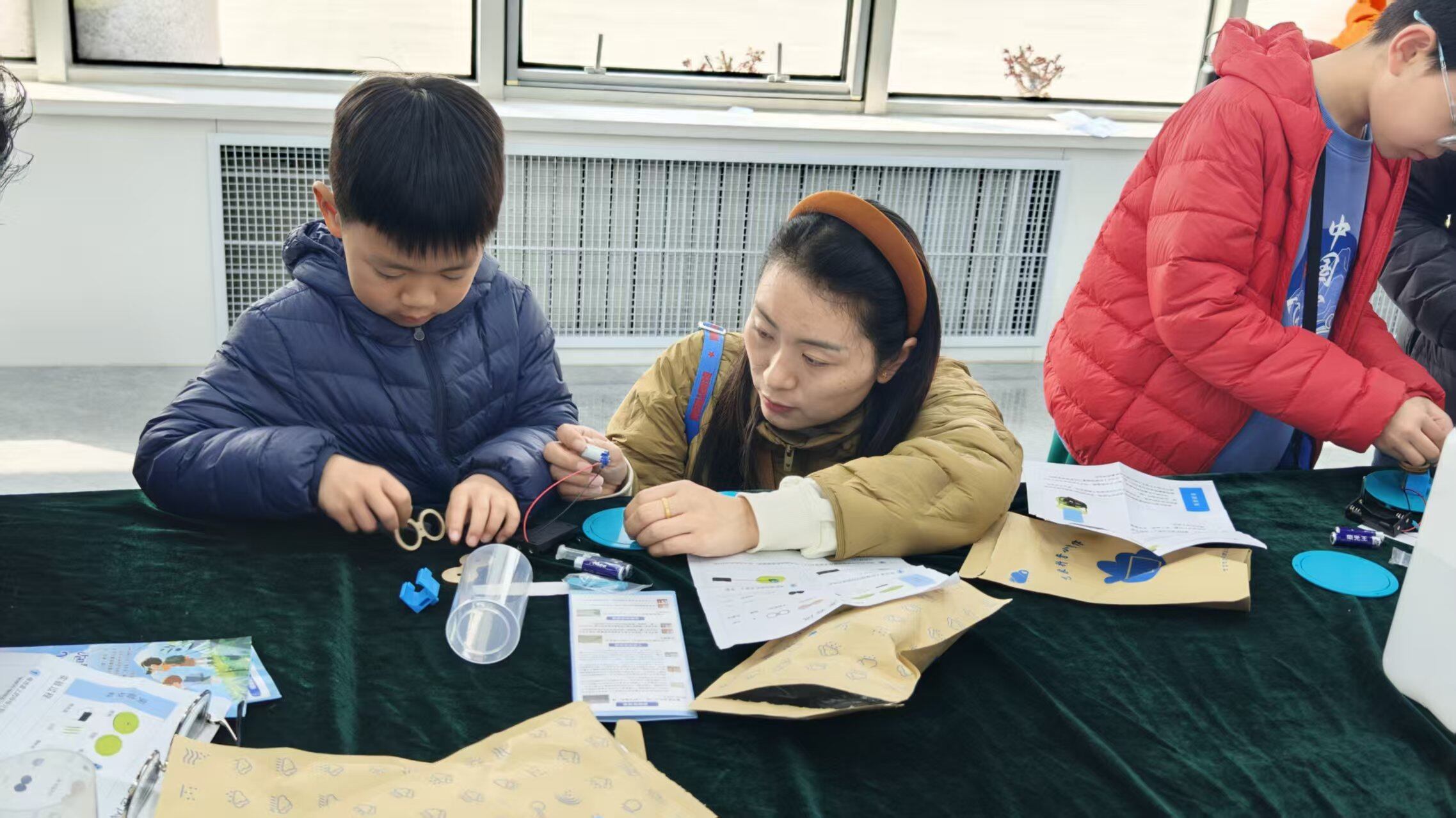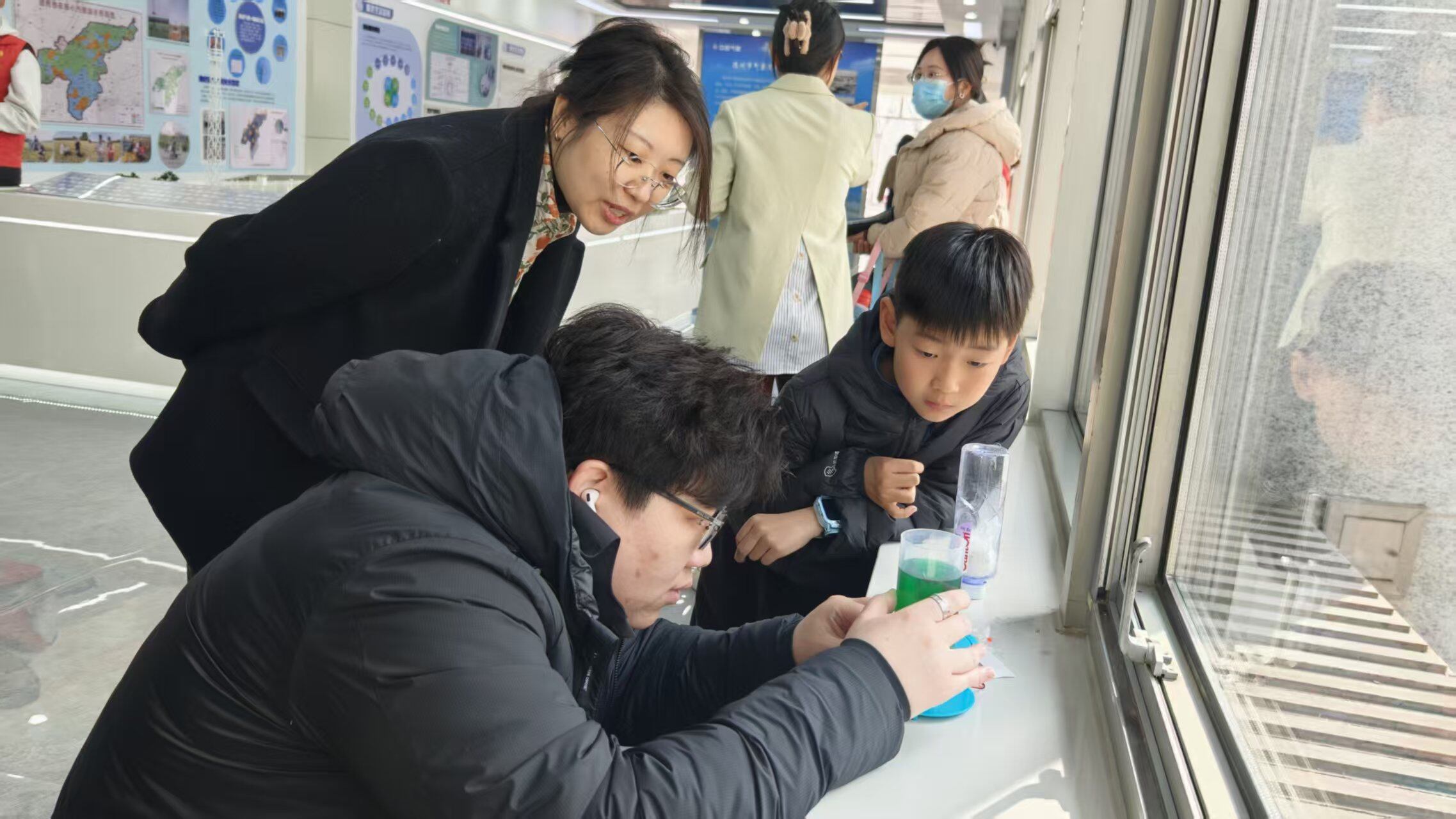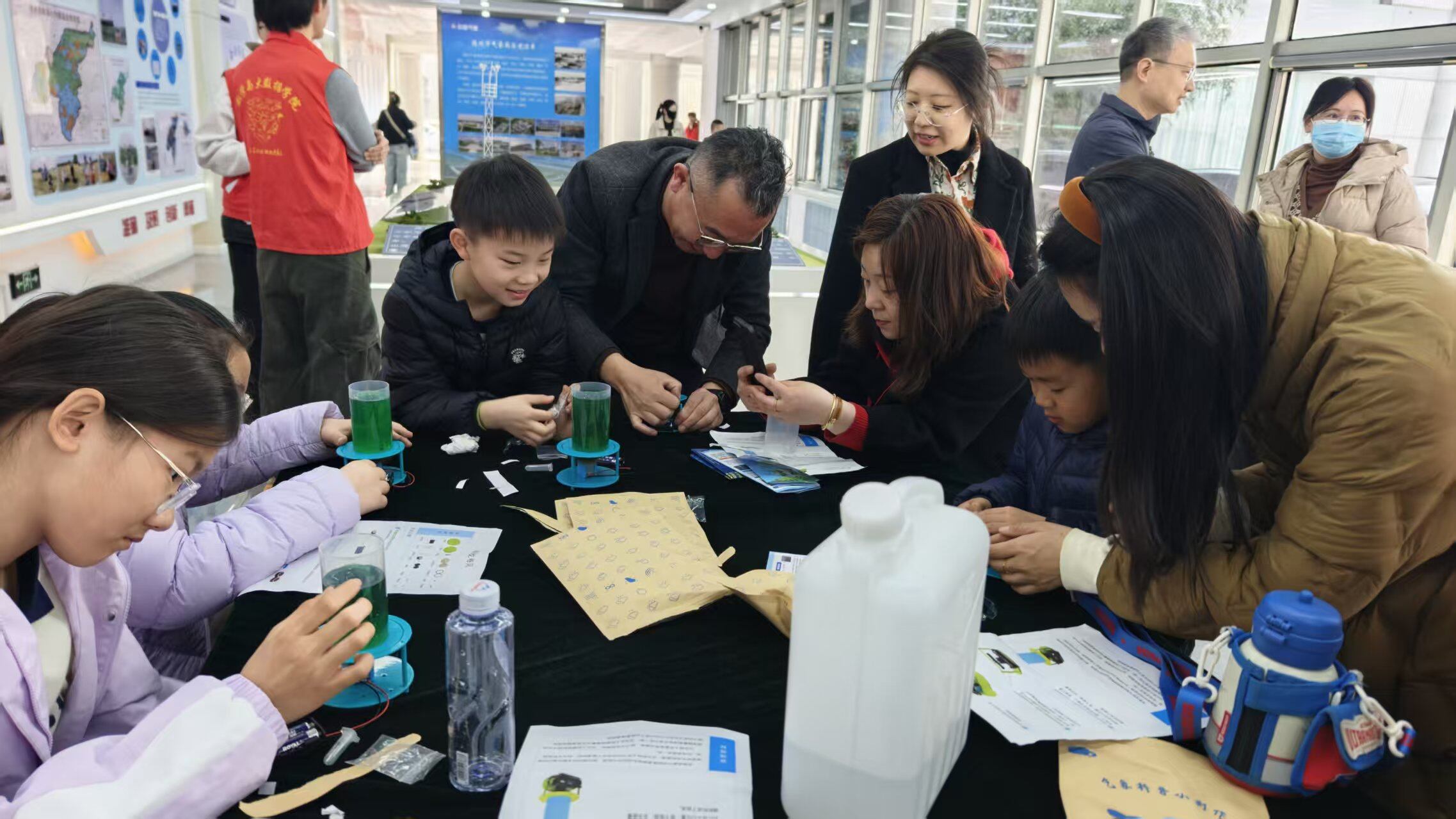 “哇,龙卷风!”活动现场不时传来孩子们的惊呼声。作为本次开放日活动的一大亮点,亲子互动游戏——模型拼插模拟龙卷风,利用水流直观再现龙卷风的形成过程,15名孩子在动手实践中学习气象知识,在互动体验中加深了对自然现象的理解。
