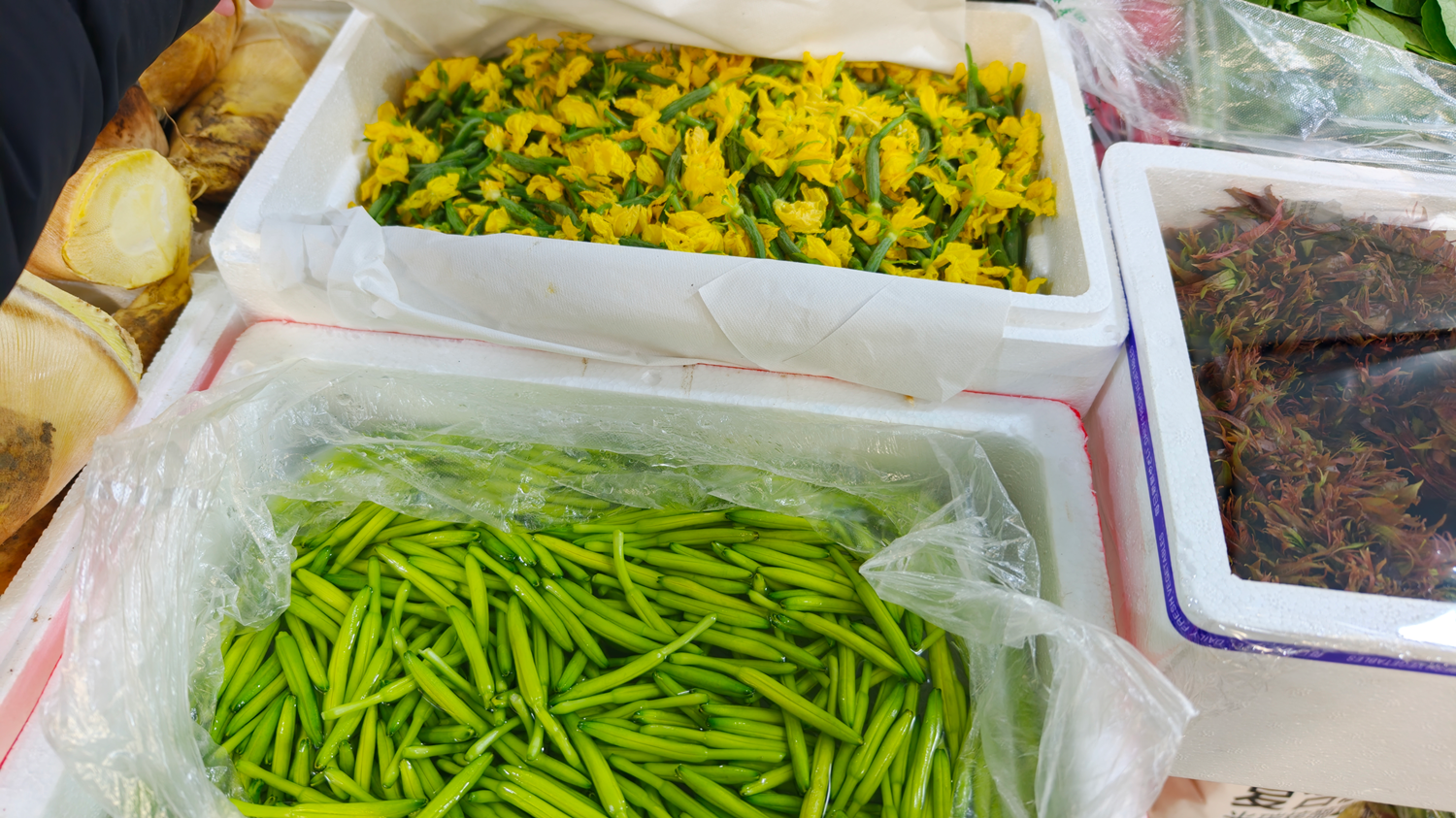 德州晚报全媒体讯 随着天气回暖,春季野菜陆续上市,成为市民餐桌上的“春日限定”。3月23日,记者走访德州城区多家商超及农贸市场发现,野菜专区人气颇高,其中面条菜售价为2.4—5元/斤,荠菜3.29—6元/斤,苜蓿5.38—6元/斤。价格稍高的婆婆丁每斤12元,而黄瓜花、黄花菜则售价35元一斤,售卖商户较少。