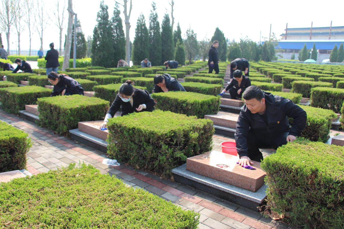 祭扫仪式结束后,全体人员手持工具,认真清扫陵园、擦拭墓碑,以实际行动守护英烈安息之地,让红色精神代代相传。