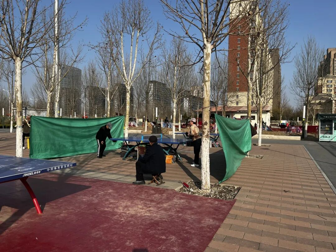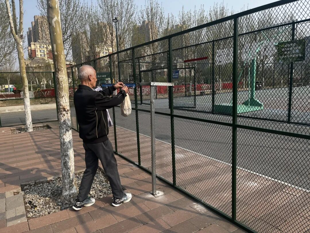 乒乓球运动区是市民健身的热门点位,针对球友反映的乒乓球易飞溅、衣物无处悬挂等问题,公园在球台周边安装环绕式围网,有效限制乒乓球活动范围,减少捡球耗时,提升运动连贯性;同时加装便民挂衣钩,方便市民悬挂衣物,让运动空间更整洁有序,细节之处尽显匠心。