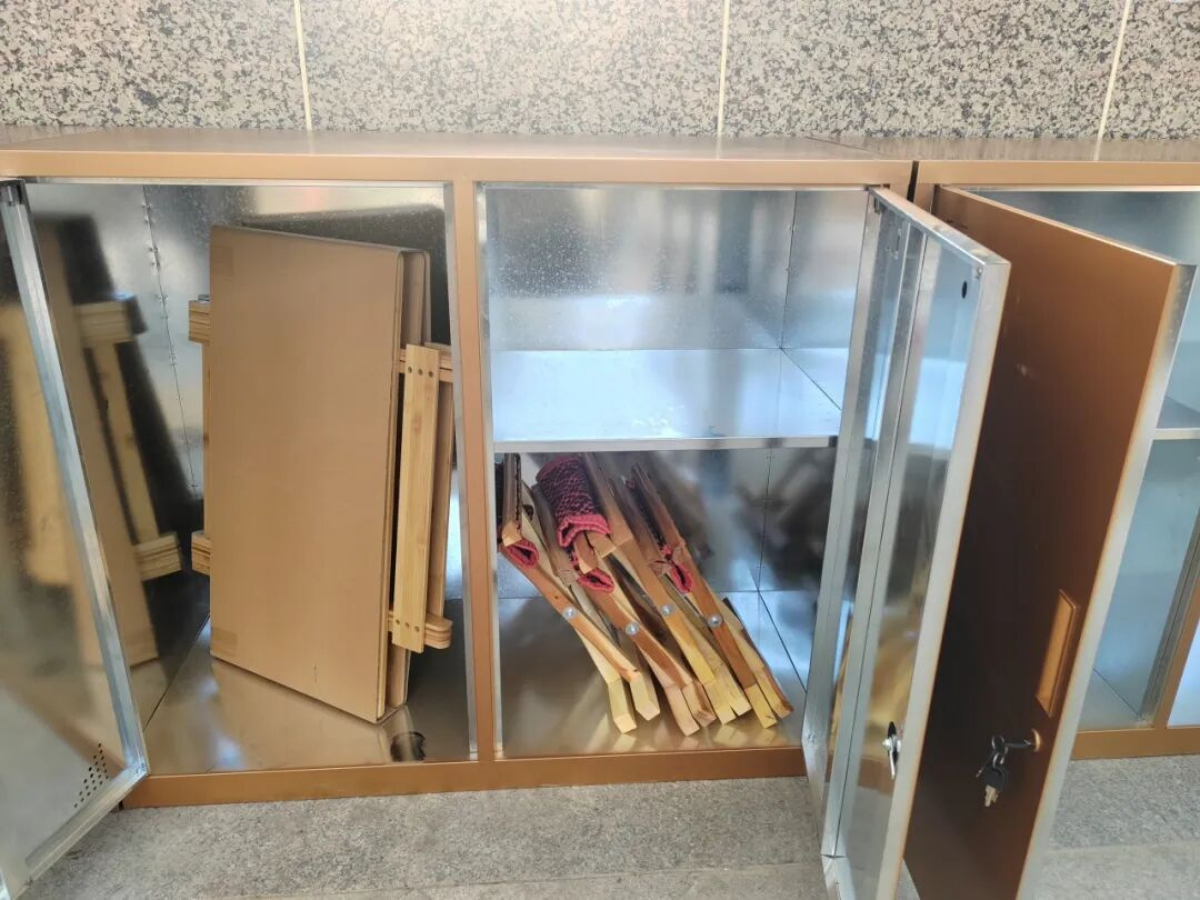 明德轩作为月湖公园的人气休闲区域,此前常有市民自带桌椅前往,导致物品摆放杂乱。此次改造中,公园专门增设储物柜,并配置多套符合老年人群使用习惯的棋牌桌椅,桌椅高度设计贴心合理,为市民棋牌娱乐、休闲会友提供了舒适稳固的环境,切实解决了市民自带器具、物品存放不便的难题。