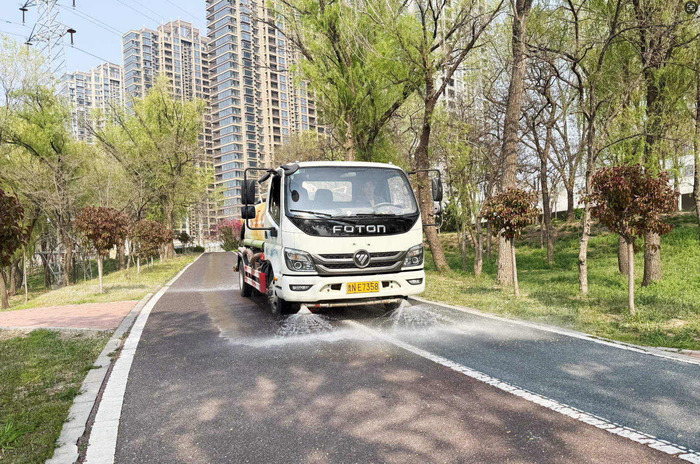 在飞絮高发时段(每日10点至16点),景区调度洒水车、雾炮车对重点区域树冠进行高压水雾喷淋。通过增加空气湿度,促使飞絮快速沉降。喷淋之后,景区同步加强路面、绿地湿扫保洁,避免二次扬尘,真正做到“见絮即湿、见絮即扫”。