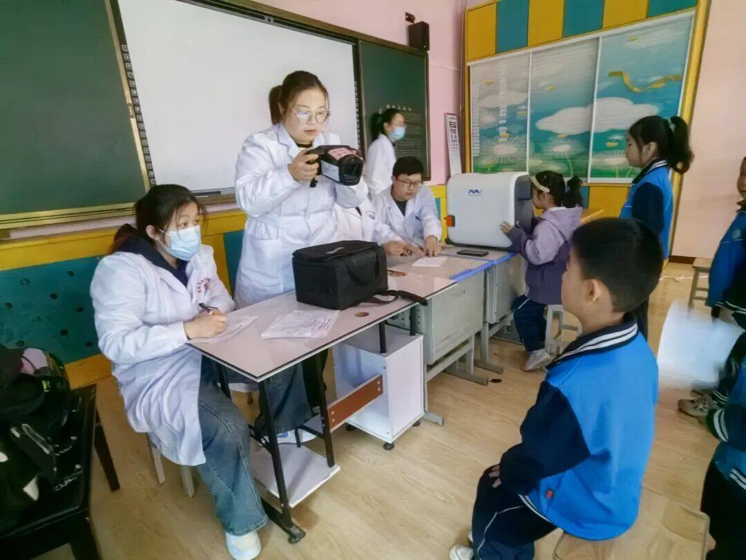 面对低年级小朋友的紧张与懵懂,医生们轻声细语、温柔鼓励,用亲切的话语化解他们的不安;对于检查中发现视力异常的学生,医生们也及时做好标记,同步反馈信息,叮嘱后续复查与科学护眼的重要事项,让专业筛查有力度,更有温度。