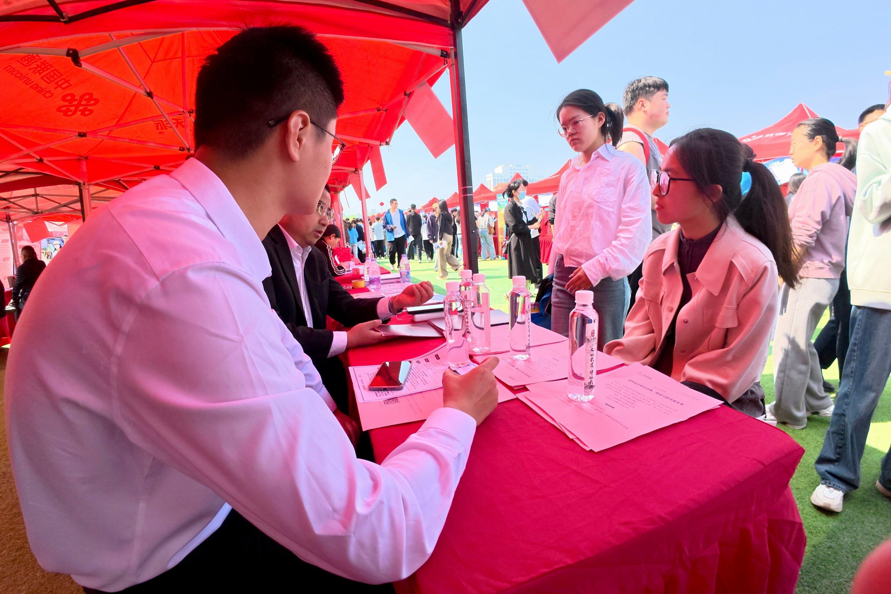 与往年不同的是,本次招聘会不仅面向应届毕业生,还特别设置了实习岗位专区,200余家用人单位面向非应届在校生提供实习机会。“我大三就能提前感受职场,还能找到对口的实习岗位,真的太贴心了。”来自化学专业的大三学生武欣语说。