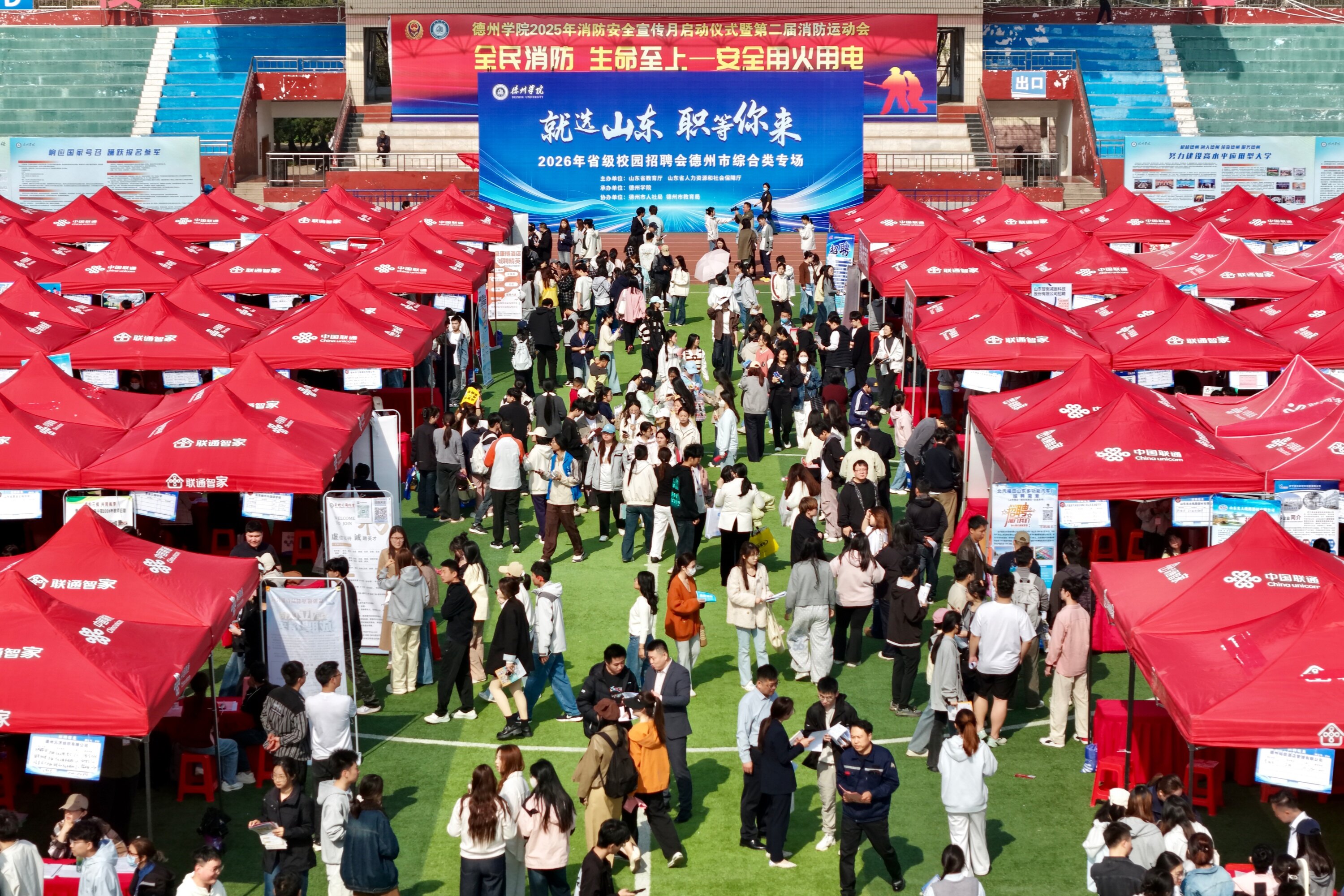 德州晚报全媒体讯 “期待这场招聘会很久了,没想到这次来的用人单位这么多,现场服务很暖心,从简历指导到政策咨询,每一个细节学校都给我们考虑到了!”德州学院2026届毕业生庄昭康说。4月12日,“就选山东 职等你来”2026年省级校园招聘会德州市综合类专场在德州学院西校区体育场如期举行。400余家用人单位携1.5万余个就业实习岗位如约而至,与德州学院2026届毕业生及在校生开启了一场诚意满满的“双向奔赴”。