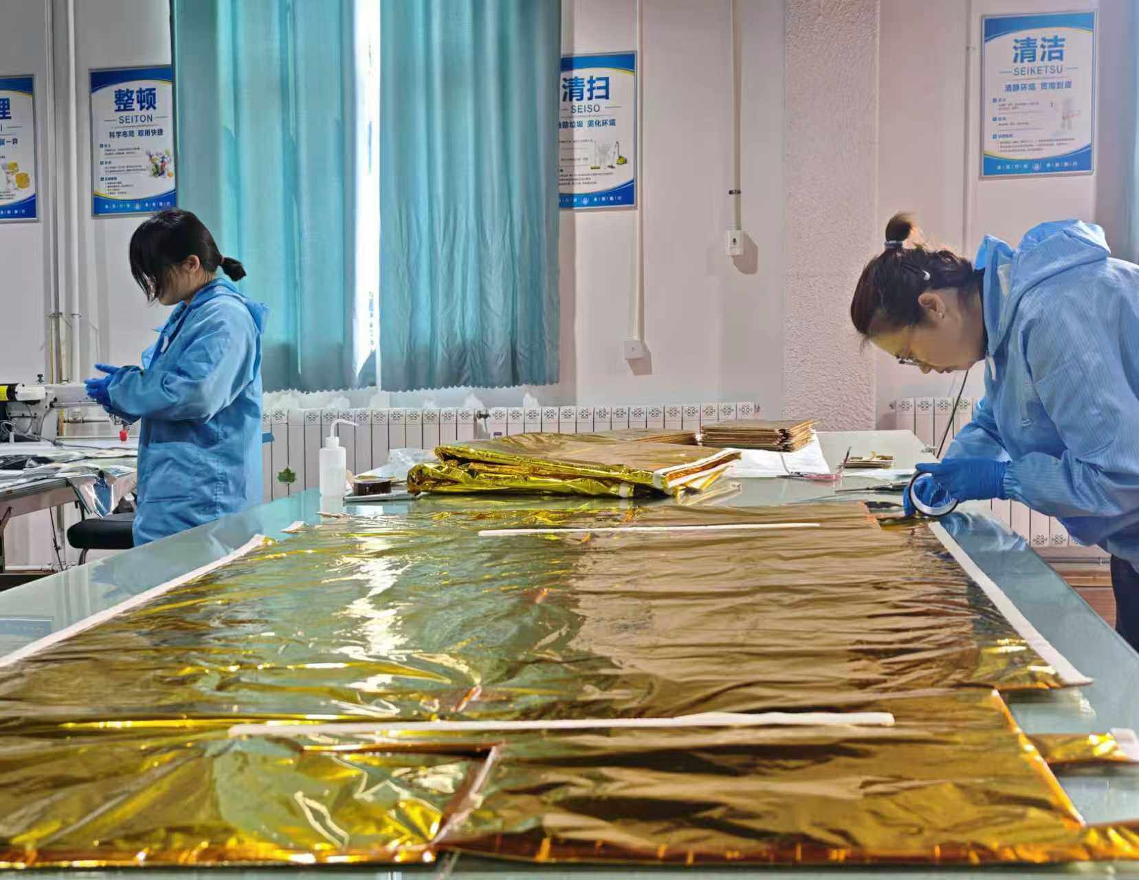 近日,在德州高新区(禹城)的山东微焓科技有限公司生产车间内,技术人员正精心处理一种金色的多层隔热材料。公司工程技术部部长李文忠将其比作航天器的“超级羽绒服”,这件“黄袍”能抵御太空中正负200摄氏度的极端温差,保障航天器核心设备的稳定运行。