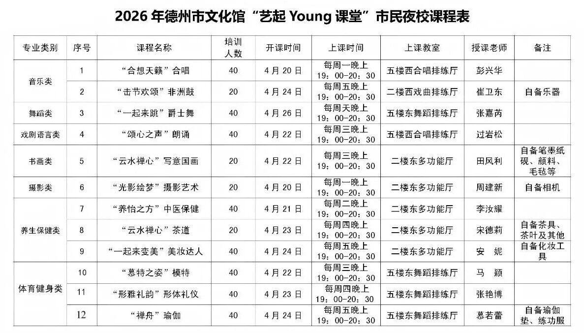 报名成功的学员名单将于4月17日(周五)上午9:00以后在德州市文化馆微信公众号统一公布。
