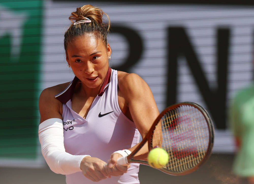 △2025年6月3日,郑钦文在2025法国网球公开赛女子单打四分之一决赛中。新华社记者 高静 摄