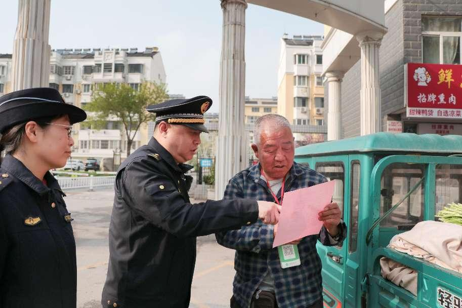 今年3月下旬以来,天衢分局执法人员对辖区主干道占道经营行为开展分级处置、柔性执法。行动前,执法人员发放《致广大流动经营业主朋友的一封信》,明确疏导点范围、定时定点经营等规范,引导商贩入点入市有序经营。