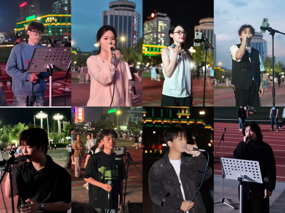 2024年4月,尹昊天自掏腰包购置设备,开始和朋友在广场上唱歌。“最初听众大多是匆匆路过的人,没有固定‘粉丝’,设备也十分简单。”尹昊天回忆,好在歌声成了最好的“邀请函”,越来越多喜欢音乐的年轻人被吸引,主动加入进来。队伍渐渐从最初的3人,发展到如今固定的8人阵容。