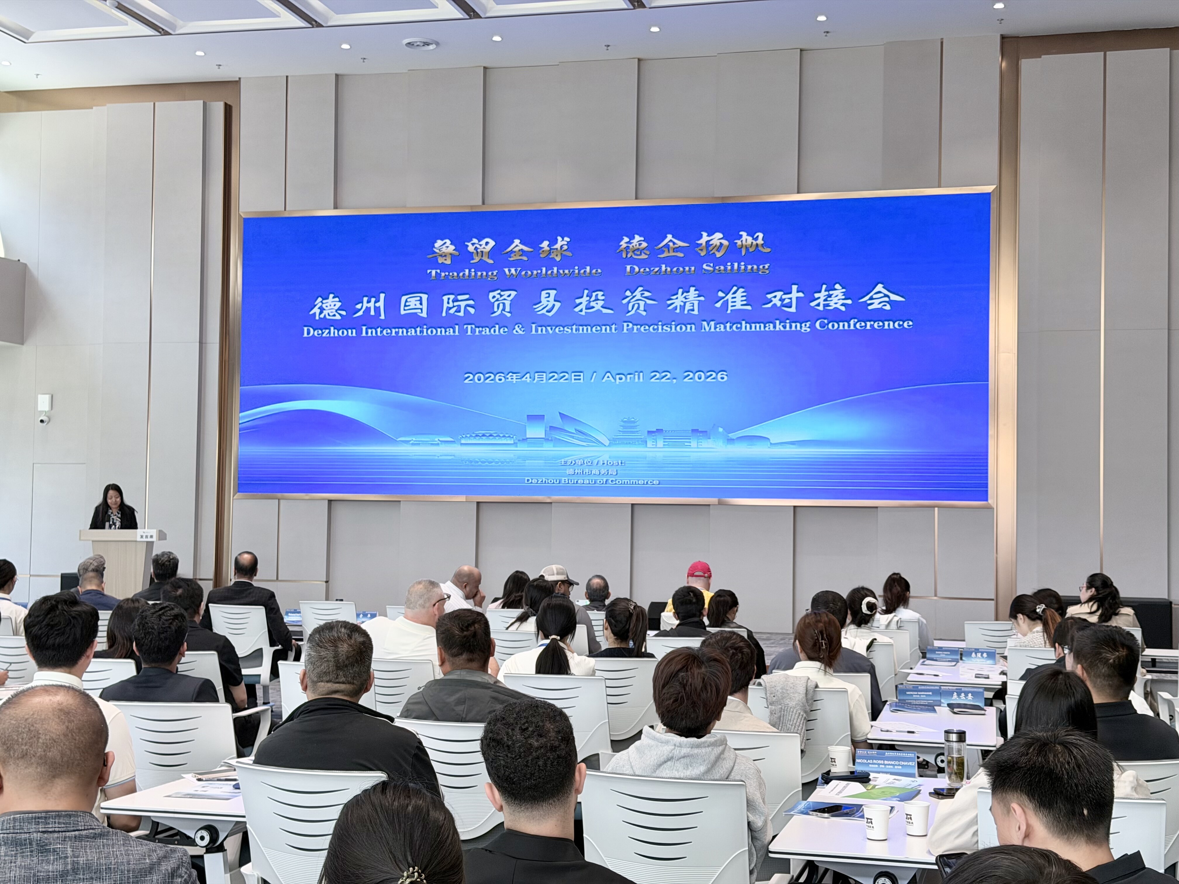 德州晚报全媒体讯 4月22日,德州国际贸易投资精准对接会在德州金融科技广场举办。德州市商务局精准邀请第139届广交会欧洲、东盟、南非、中东、中亚等16个国家27位国际采购商,与本地110多家企业面对面洽谈,搭建起高效国际合作对接平台,让企业足不出市抢抓全球商机,实现“家门口”拓市场、增订单。