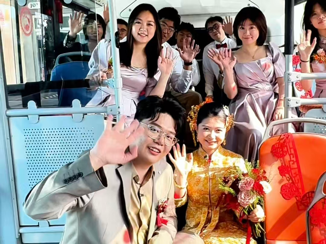 “一路上大家说说笑笑、玩游戏,热闹又温馨,比豪华车队有意义多了。”李厚芳说,公交车空间宽敞,不仅能载上所有亲朋好友,更能装下满满的祝福。这场别开生面的婚礼,不仅低碳环保、省钱省心,更让每一位亲友都成了幸福的参与者,而不仅仅是旁观者。